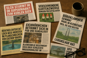 Absurde Schlagzeilen auf Holztablett von Désirée Müller | Aug. 19, 2025 | 0 Kommentare Kommentar absenden Antwort abbrechenDeine E-Mail-Adresse wird nicht veröffentlicht. Erforderliche Felder sind mit * markiertKommentar * Name * E-Mail * Website Δ